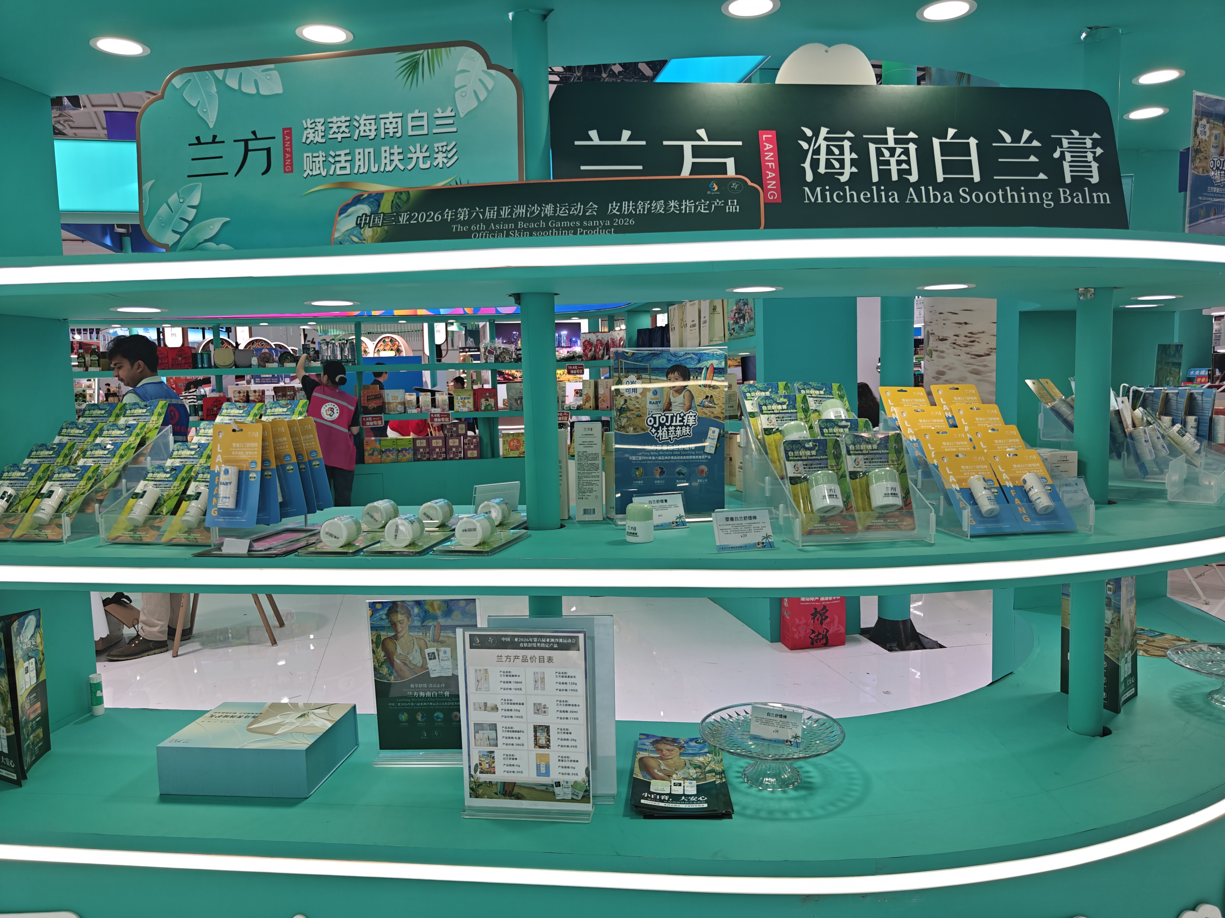 特別值得一提的是,我們帶來的這款白蘭舒緩膏,是第六屆亞洲沙灘運動會皮膚舒緩類指定產品。真正體現了“海南好物,服務全球”的品質。